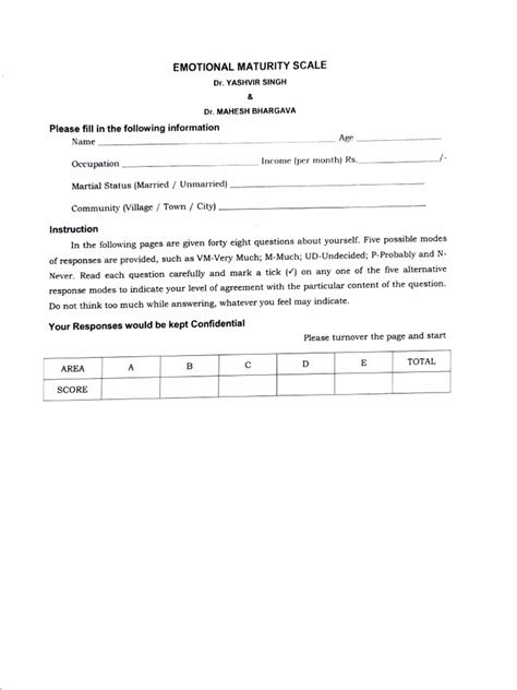 Download PDF Online Questionnaire On Emotional Maturity By Bhargava Google eBookstore PDF